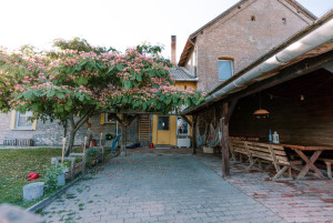 Tata és Komárom között, csendes, természetközeli környezetben áll ez a különleges birtok, amely az 1900-as évek elején épült az Esterházy-uradalom részeként. Az egykori majorsági és magtárépület ma hangulatos, rusztikus otthonként és egyben izgalmas vállalkozási lehetőségként várja új tulajdonosát. A közel 600 m²-es épületből 200 m² lakótér, ahol az eredeti fagerendás mennyezet, a kézzel készített bútorok és a kovácsoltvas díszítések a múlt eleganciáját idézik. A ház szíve a hagyományos kenyérsütő kemence, amely melegséget és otthonosságot sugároz. A birtokon helyet kapott egy 80 m²-es kézműves pékműhely, több tágas műhely és egy 240 m²-es, boltozatos pince is – borozónak, rendezvényhelyszínnek vagy turisztikai projekthez kiváló alap. A beépíthető padlás és a jó szerkezeti állapot további fejlesztési lehetőségeket rejt. A 10.000 m²-es telek parkosított előkerttel és tágas udvarral rendelkezik, hátsó része pedig állattartásra vagy legeltetésre is alkalmas. A birtok fűtését vegyes tüzelésű kazán, hőszivattyú és klíma biztosítja – így a hagyomány és a modern technológia itt tökéletes harmóniában él. Ez az ingatlan nem csupán ház, hanem életforma. Ideális választás mindazoknak, akik szeretik a természetet, értékelik a kézműves hagyományokat, és szívesen élnének egy valóban különleges, történelmi környezetben.
